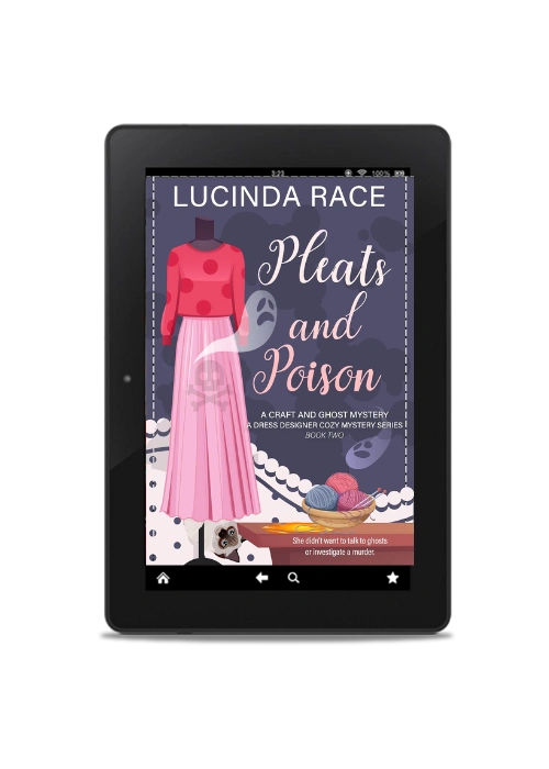Pleats & Poison is the third book in the A Dress Designer Cozy Mystery series from award-winning author Lucinda Race. Cozy up, settle in, and prepare to be haunted… in the best possible way!